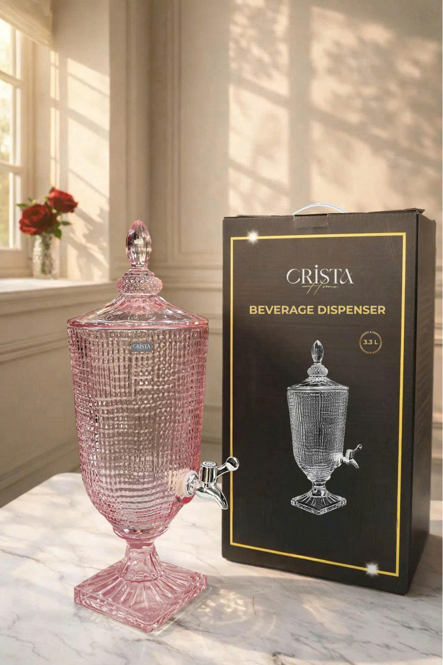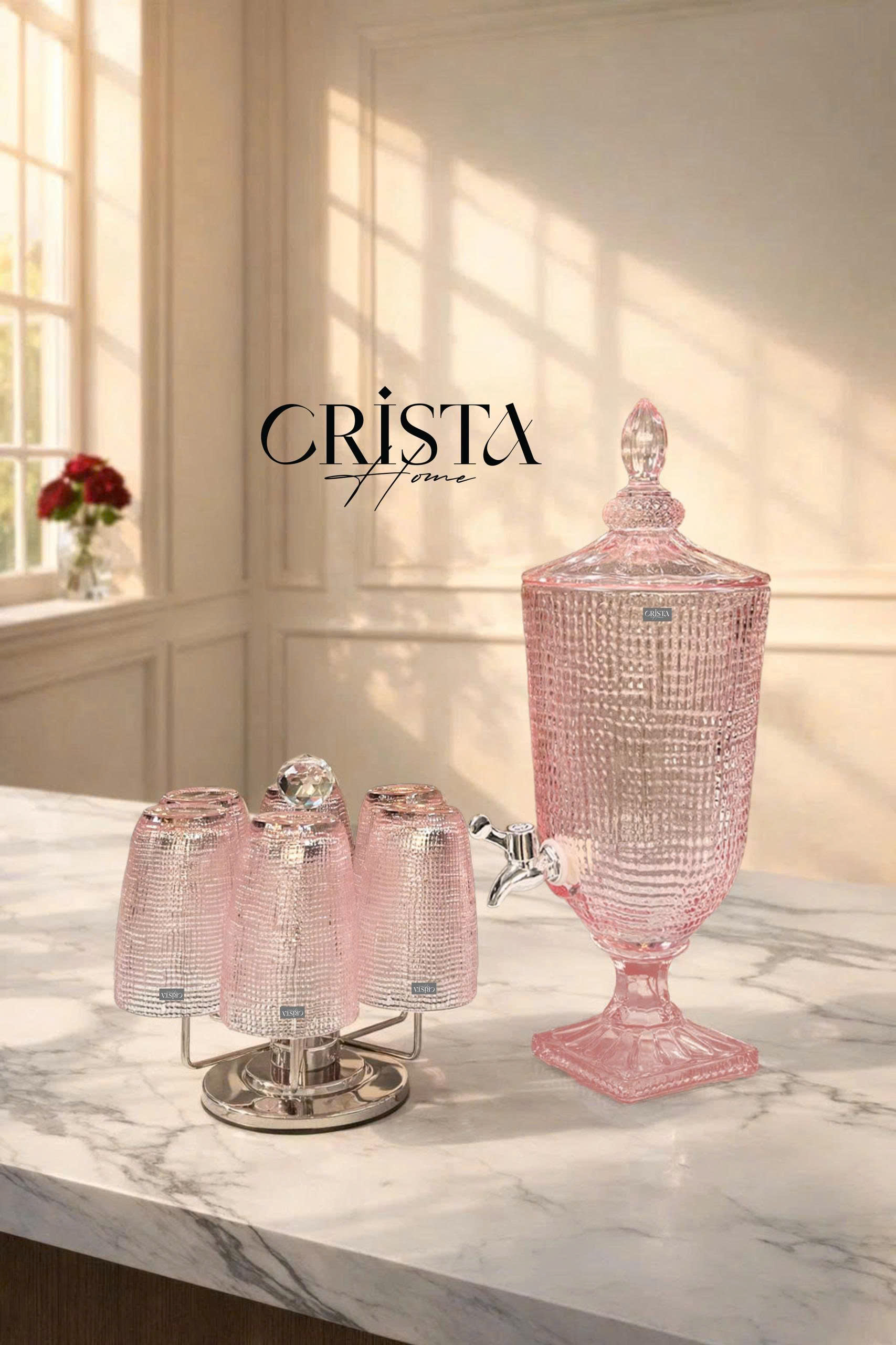 - Tên sản phẩm: Bình thủy tinh vân lưới CRISTA HOME 3.3L – màu Hồng