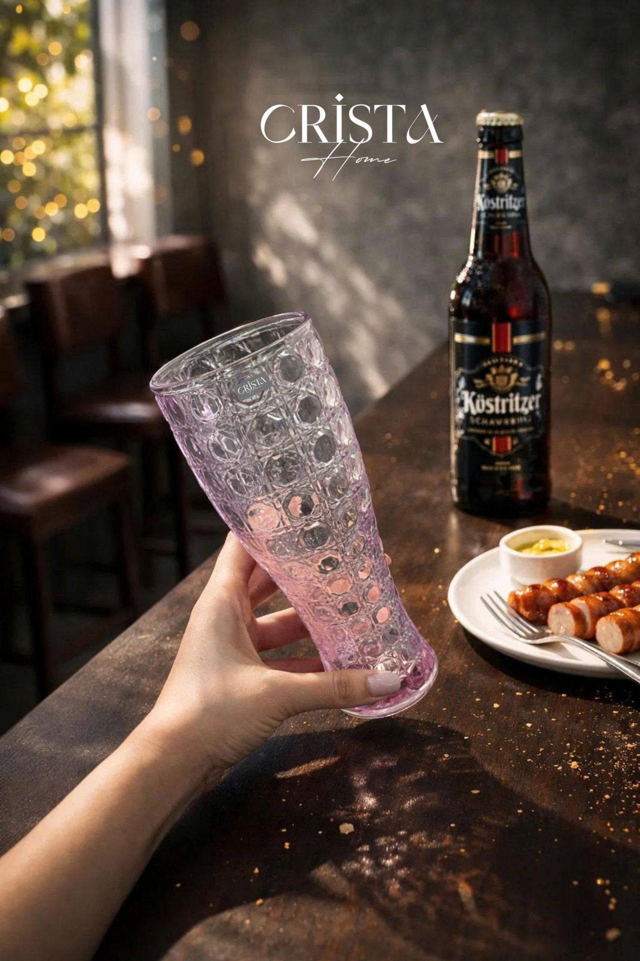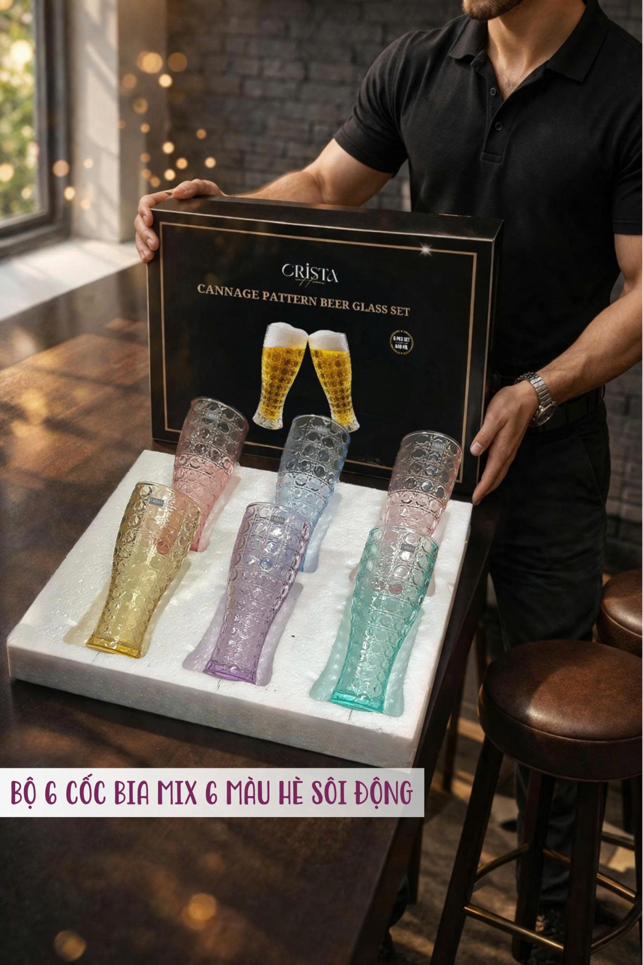 Bộ ly bia thủy tinh CRISTA HOME vân pha lê nổi bật với thiết kế cao thanh thoát, kết hợp họa tiết pha lê sắc nét tạo hiệu ứng bắt sáng tinh tế. Chất liệu thủy tinh trong veo giúp tôn lên màu sắc đồ uống, từ bia vàng, bia đen đến nước ép hay nước lọc đều trở nên “ngon mắt” hơn. Form ly cao giúp giữ bọt tốt, mang lại trải nghiệm uống trọn vẹn và cảm giác “chill” như tại quán.